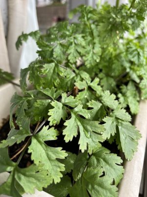 今のところ今年はバジル、パクチー、ディルの種を撒きました。パクチーは寒さに強く、少し前に撒いたものがすでに大きくなっています。サラダにも良いですが、うちでは担々麺に使っています。